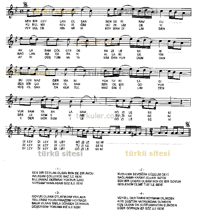 sarki notalari turku notalari flut notalari gitar notalari