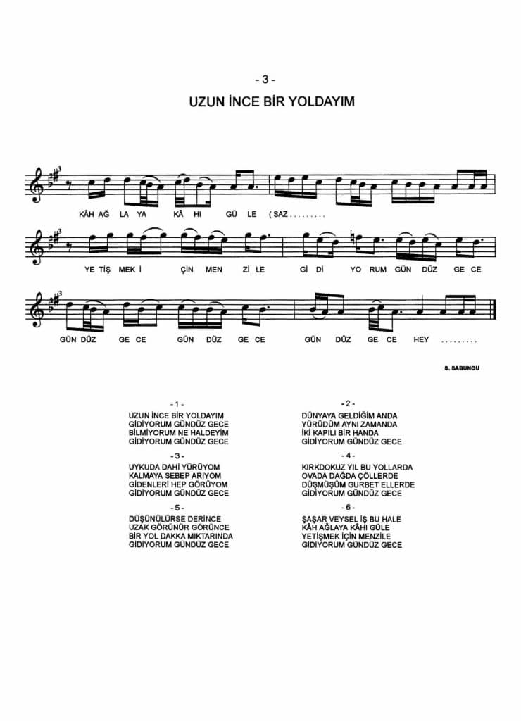uzun ince bir yoldayim soz nota