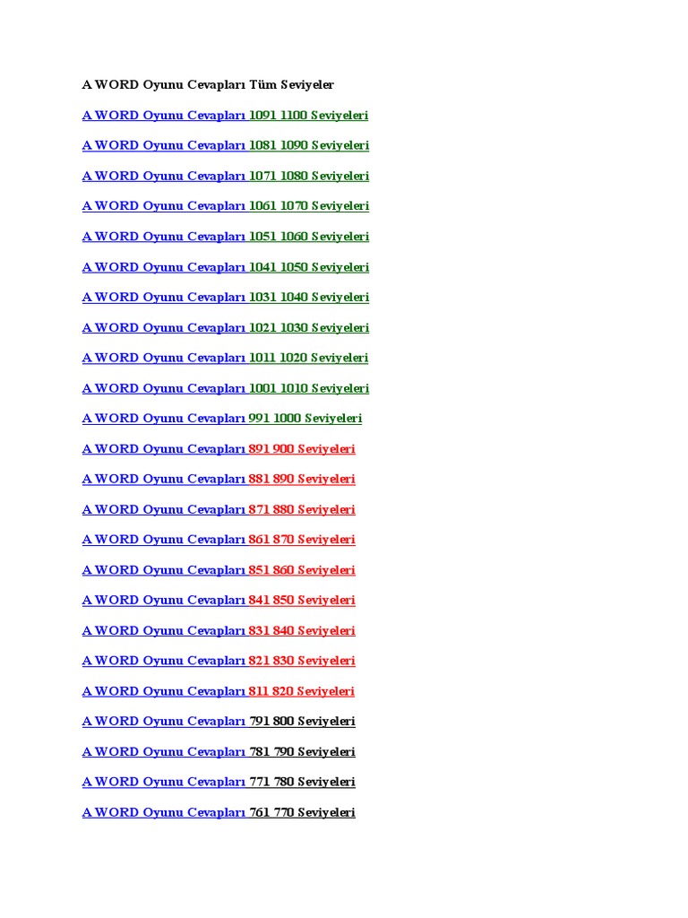 a word oyunu cevaplari tum seviyeler guncel