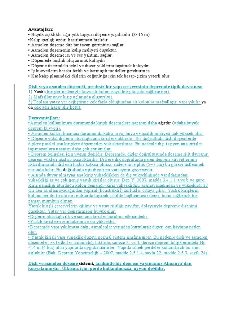 insaat teknigi disli ve asmolen dosemelerin avantaj dezavantajlari