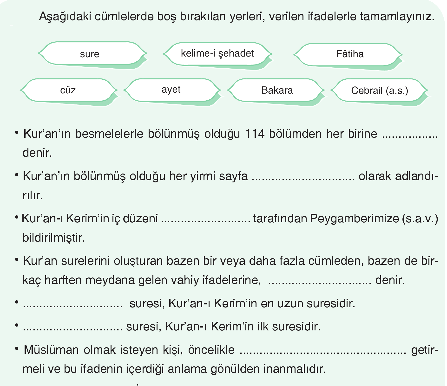 9 sinif 4 unite vahiy ve akil kuran in ic duzeni ile ilgili kavramlar